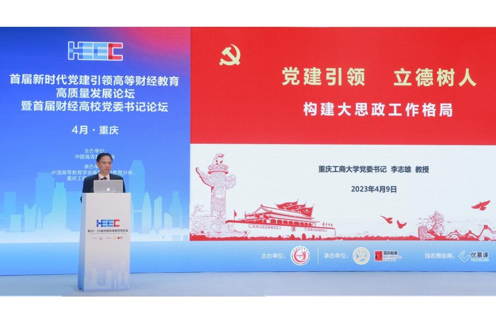 4月9日,作为第58·59届中国高等教育博览会的主论坛之一,由中国高等教育学会主办,中国高等教育学会高等财经教育分会、我校承办的首届新时代党建引领高等财经教育高质量发展论坛暨首届财经高校党委书记论坛在重庆悦来国际会展中心喜悦厅顺利举行。中国高等教育学会副会长邬大光,中共重庆市委教育工委委员帅逊,对外经济贸易大学党委书记黄宝印,上海财经大学党委常委、常务副校长徐飞,北京工商大学党委书记黄先开,安徽财经大...