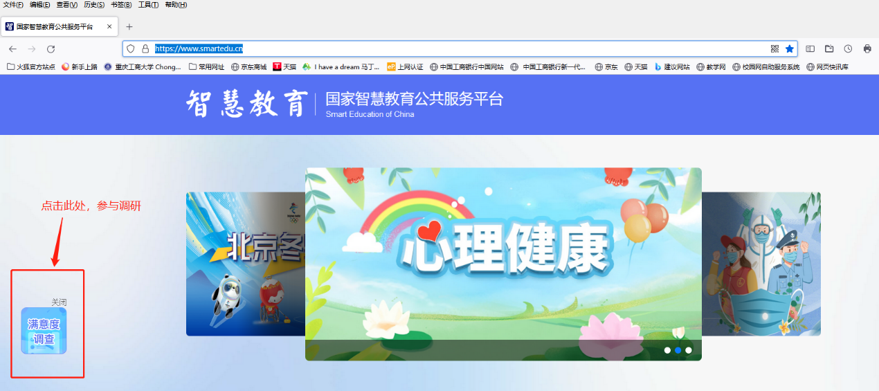 调研方式:访问国家智慧教育公共服务平台(https://www.smartedu.cn/),点击九州登录地址_九州(中国)的悬挂窗口参与调查。