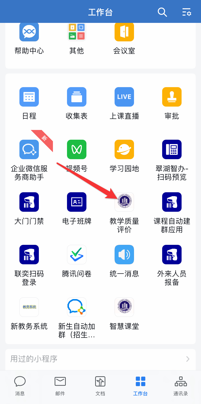 为了提高我校本科教学质量监督与评估工作信息化水平,经过运行调试,我校教学质量评价系统(手机端)部分功能已于近日上线试运行。学校中层干部即日起可通过“企业微信——工作台”登录教学质量评价系统,在线填写提交听课评价表,原纸质《领导干部听课手册》方式不再使用。具体操作方法详见附件《教学质量评价系统操作指南(领导干部听课)》。
