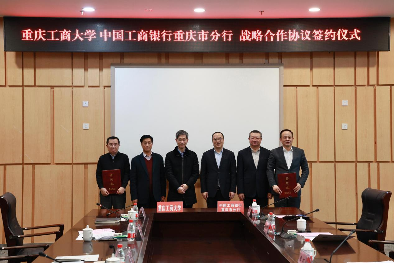 1月12日下午,中国工商银行重庆市分行党委书记、行长陈汀一行调研我校,并与我校签订战略合作协议。中国工商银行重庆市分行党委委员、副行长贺明、韩忠东,我校校长孙芳城、副校长陈兴述、赵骅参加了签约仪式。