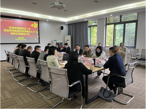 4月14日,副校长李敬一行到经济学院指导经济学拔尖人才培养示范基地工作,教务处、招就处、经管中心、评估办、国际合作处、研究生院、人事处、学生处等部门负责人,经济学院领导班子、各系主任、科级干部、教师代表、辅导员代表参加了会议。会议由经济学院党委书记李自维主持。