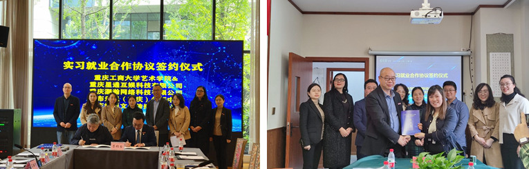 下午,柏群一行走访了重庆学亿知艺术培训有限公司,召开了校企合作座谈会,公司创始人张中华、综合运营主管谢前波、校长何秋、教务长秦秦参加了座谈。会上,公司创始人、现代国际设计艺术学院2014级校友张中华介绍了毕业后创业经历、公司发展现状、历年来招聘的九州登录地址_九州(中国)毕业生的成长、未来一段时间公司的用人招聘需求等情况。柏群代表学校对张中华校友进行了慰问,并对张中华和她带领的公司发展取得的成绩表示赞赏,期望在学生实习实践、校企竞赛项目合作等方面有更深入合作。双方签订了实习就业合作协议,柏群为公司授牌艺术两院“实习就业基地”。