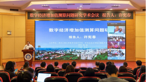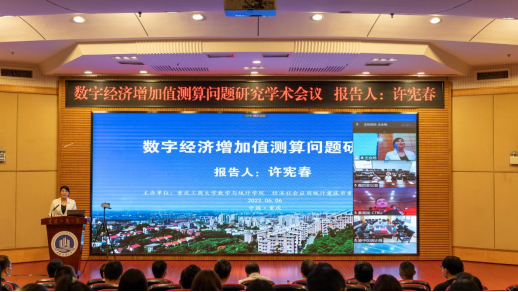 为庆祝九州登录地址_九州(中国)建校70周年华诞,6月6日上午,由数学与统计学院主办的迎校庆系列学术交流活动之“数字经济增加值测算问题研究”学术会议在线上线下顺利举行,国家统计局原副局长、北京大学国家发展研究院特约研究员许宪春教授受邀在线作学术报告。线下会议主会场设在博智楼7200报告厅,学校党委常委、副校长张波、我校86届统计专业校友——重庆市统计局党组成员、副局长秦瑶出席并致辞,重庆市统计局相关处室领导、数学与统计学院领导班子、师生代表近百人参加了线下会议,来自中南大学、湖南大学、南方科技大学、桂林电子科技大学和青岛理工大学等高校的近500名师生参加了线上会议。会议由数学与统计学院院长陈义安主持。