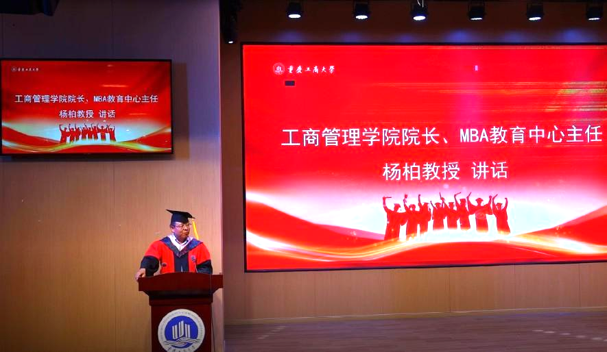 最后,杨柏讲话,向2022届MBA毕业生表示了祝贺,并寄语疫情并未阻挡大家的学习热情,作为导师朋友:勇担使命,向第二个百年奋斗目标,脚踏实地谱写徽章,强健体魄,心中有火眼中有光。
