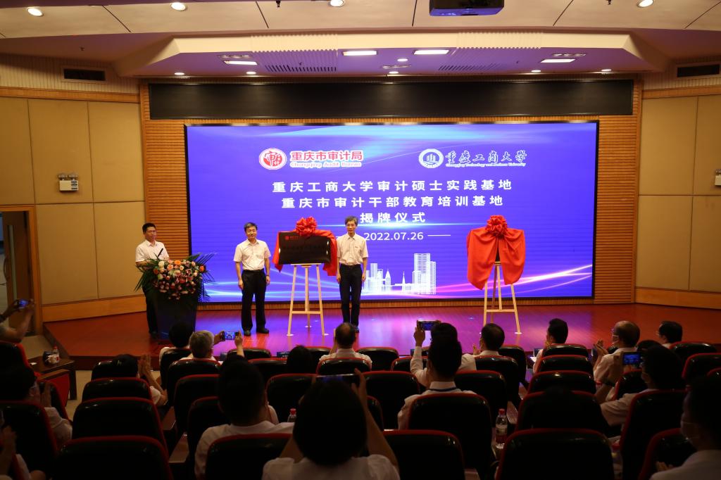 孙芳城和姜国杰共同为我校“重庆市审计干部教育培训基地”“审计硕士实习实践基地”揭牌。