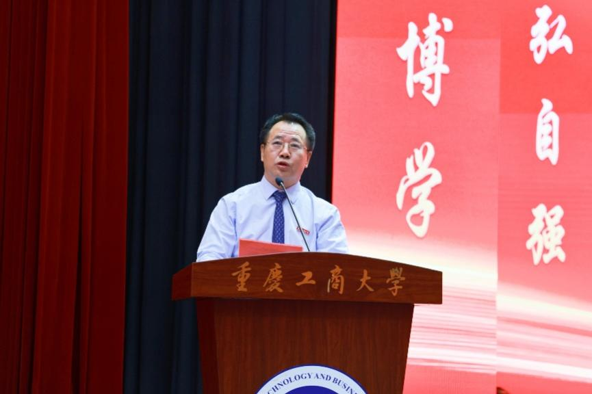 天健会计师事务所管理合伙人、副总裁、重庆分所总经理,我校1990级会计专业龙文虎作为校友代表发言。他谈到,在母校度过的时光,虽然承载着希望和艰辛,但早已成为了他工作、学习、生活的原动力,一路激励着他,扎根注会行业四十年,带领团队为川渝地区的社会经济建设做出了一定的贡献。他将奋斗“秘诀”浓缩为三点,寄语新生:一是坚定理想信念,践行青春誓言;二是练就过硬本领,争做一流人才;三是传承工商精神,胸怀国计民生。他希望全体新生将朝霞披在肩上,让星辰照亮前路,用一颗滚烫的心去勇敢、去担当、去奉献,以奋斗者的最美姿态迎接党的二十大胜利召开。