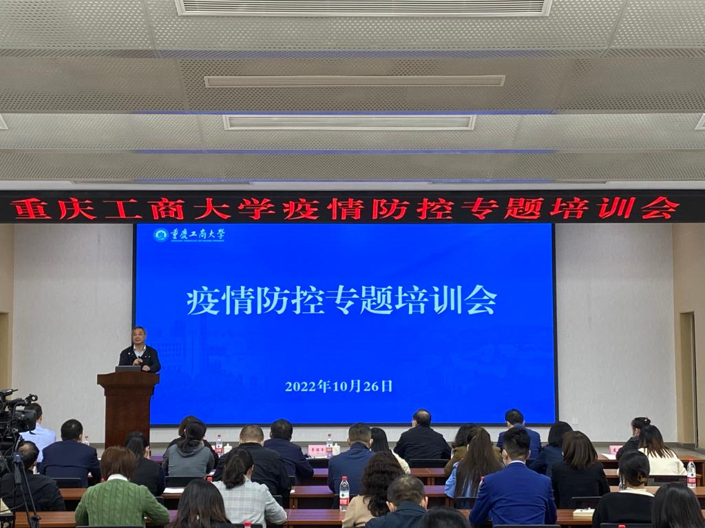 10月26日,学校在明德楼1019报告厅,通过线上与线下相结合的方式召开了疫情防控专题培训会,副校长张波、李国军,南岸区卫健委疫情防控现场处置组副主任医师杜佳校,南岸区海棠溪街道学府路社区党委书记、居委会主任张文婷,副主任夏梦雅,委员李方正出席会议;学院主要负责人、分管学生工作负责人、学生疫情防控联络人,疫情防控领导小组成员单位负责人,各单位疫情防控工作相关人员参加会议。会议由疫情防控工作领导小组办公室主任罗勇主持。
