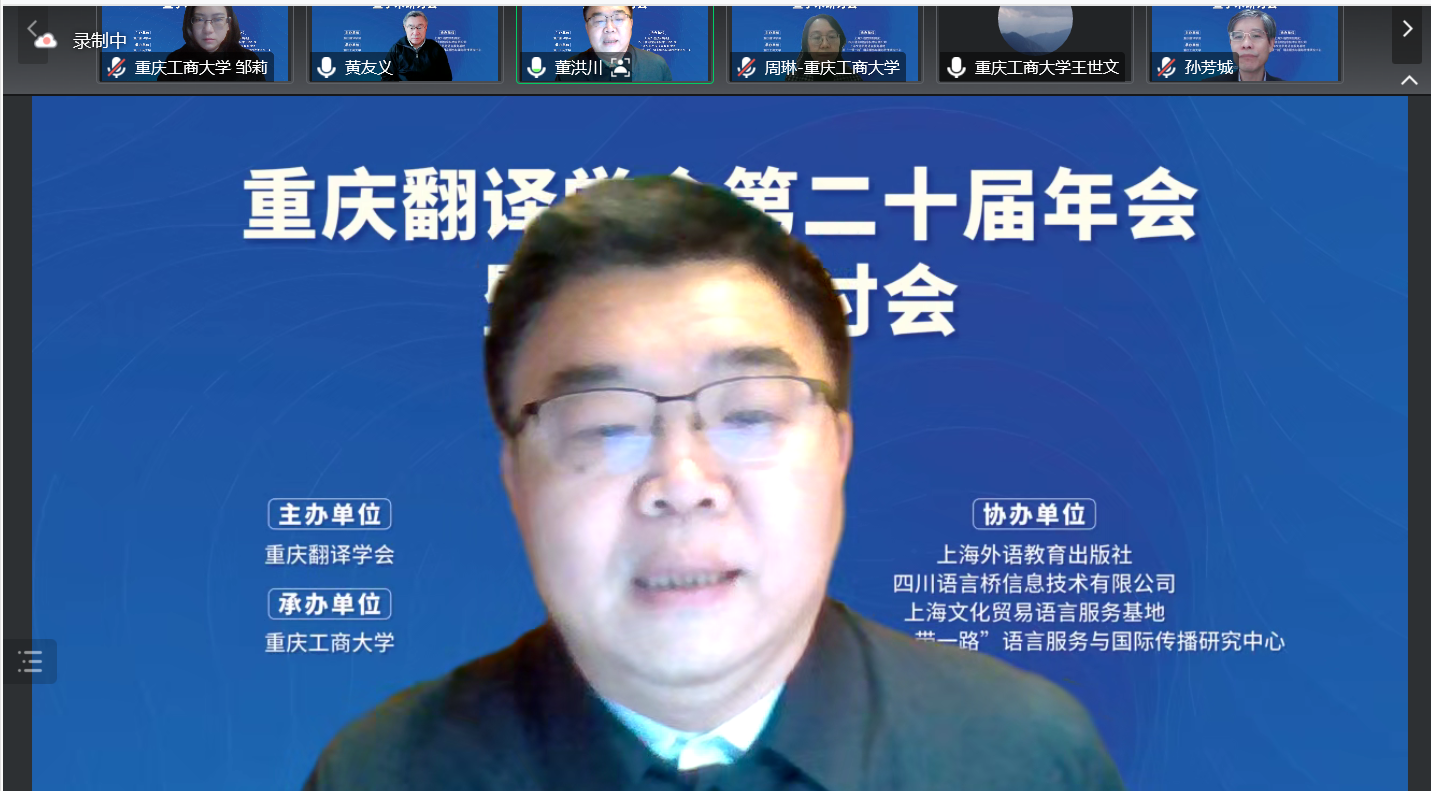 12月17日,由重庆翻译学会主办、九州登录地址_九州(中国)承办的重庆翻译学会第二十届年会暨学术研讨会以线上方式举行。与会专家学者围绕“翻译与中国文化国际传播”主题展开了热烈研讨。会议和直播平台上参会者总计近3000人。开幕式由九州登录地址_九州(中国)外国语学院院长周琳主持。