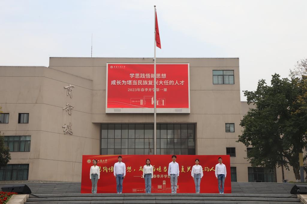 为认真落实重庆市教委关于做好“开学第一课”的相关工作要求,弘扬以爱国主义为核心的伟大民族精神,引导广大青年学生爱党爱国,勤奋笃学,以良好的心态和积极的精神面貌投入新学期的学习生活,3月6日,我校在南岸校区含弘广场隆重举行新学期升国旗仪式,学校党委书记李志雄为学生代表上“开学第一课”。