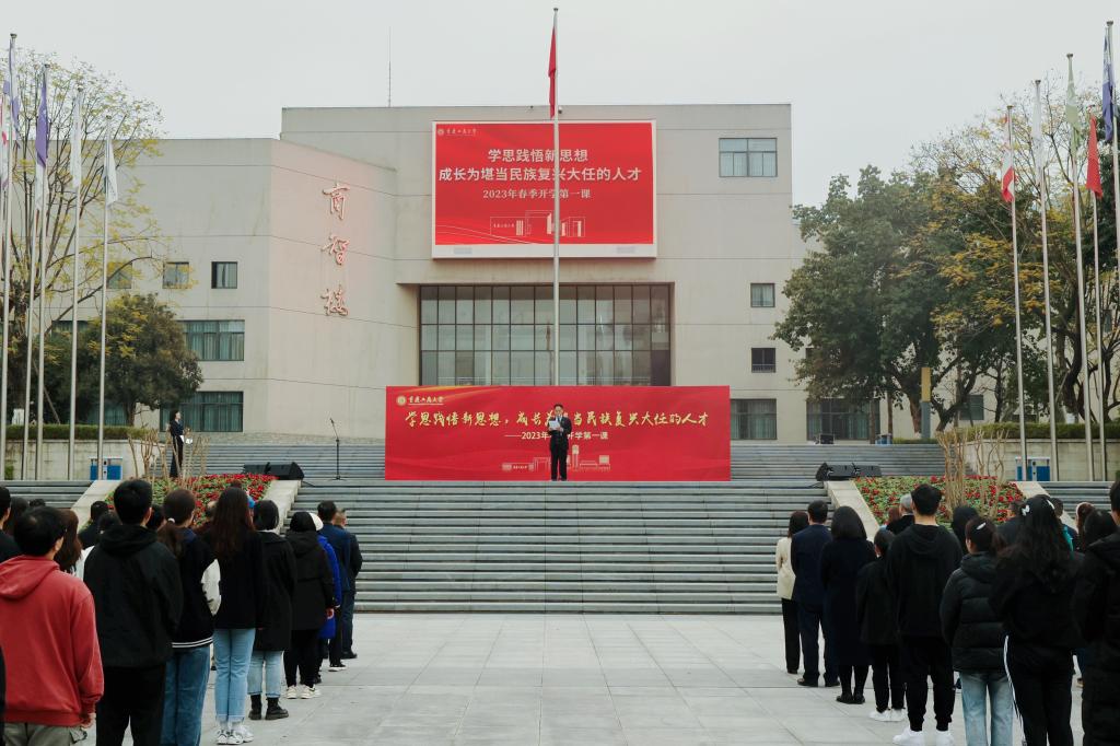宋豫在主持中谈到,2023年是全面贯彻落实党的二十大精神和市委六届二次全会精神的开局之年,是推动学校第四次党代会和学校“十四五”确立目标任务落地见效的关键之年。她强调,新学期,新气象,同学们要学思践悟新思想,以梦为马,不负韶华,成长为堪当民族复兴大任的人才,在中国式现代化的赛道上跑出重工商大学子最好的成绩。