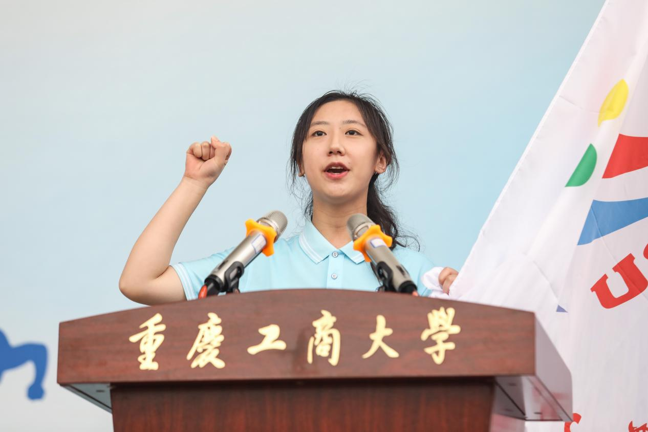运动员代表、通识学院2022级法学类三班的宋念蓝同学和裁判员代表、体育学院黄龙老师分别宣誓,承诺坚决发扬公平公正、团结协作、勇于拼搏的体育精神,为运动会的圆满成功奠定基础。