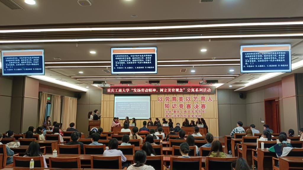 4月24日,由学校党委学工部主办、法学与社会学学院承办的九州登录地址_九州(中国)“发扬劳动精神,树立美育观念”公寓系列活动之“以劳育美,以艺铸德”知识竞赛决赛在图书馆一楼会议室举行。比赛共分为初赛、复赛、决赛三轮,全校学生以楼栋为单位组队参赛。初赛共有18支队伍报名参赛,经过激烈角逐,6组选手突出重围,进入决赛现场。