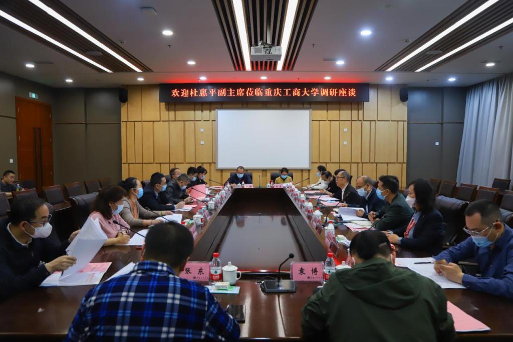 5月11日上午,重庆市政协副主席、民盟重庆市委会主委、重庆理工大学校长杜惠平一行到我校专题调研“人口高质量发展”,并召开调研座谈会。民盟市委会副主委、我校校长温涛,党委常委、副校长李敬及相关专家、学者参加了本次调研座谈会。会议由杜惠平主持。