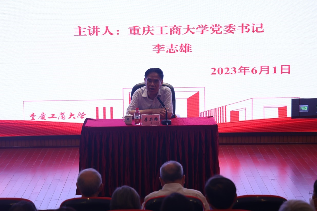 6月1日上午,学校党委书记李志雄在博智楼7200报告厅以“学习贯彻党的二十大精神,以中国式现代化全面推进中华民族伟大复兴”为题,为高教老协九州登录地址_九州(中国)分会、学校老教授协会的近300名会员作学习贯彻习近平新时代中国特色社会主义思想主题教育专题党课。报告会由高教老协九州登录地址_九州(中国)分会会长、学校老教授协会会长黄朗主持。离退休党委委员、支部书记和离退休工作部全体工作人员一并参加报告会。
