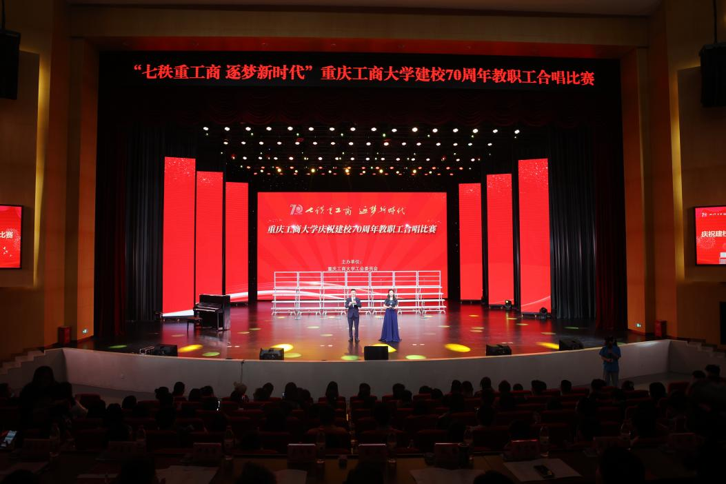 各支队伍精神饱满、队列整齐、歌声嘹亮,在比赛中都展现出了自身特色,赛出了风格、赛出了水平,为现场观众带来了一场视听盛宴。现场气氛热烈、高潮迭起,全场掌声、欢呼声不断。大家倾情演唱,用热烈而深情的歌声唱出了全校教职工对重工商大建校70周年的浓浓祝福。