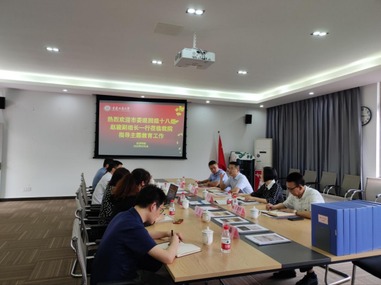 6月8日下午,市委巡回指导十八组赵骏副组长一行到我校经济学院调研指导主题教育工作,通过实地考察、座谈交流、查阅资料等方式,全面了解经济学院主题教育开展情况,对推进主题教育作全面指导。学校党委常委、组织部部长郑夕春,机关党委书记兼组织部副部长王建明,经济学院党委班子成员、各支部书记及师生代表参加调研。