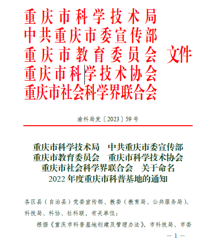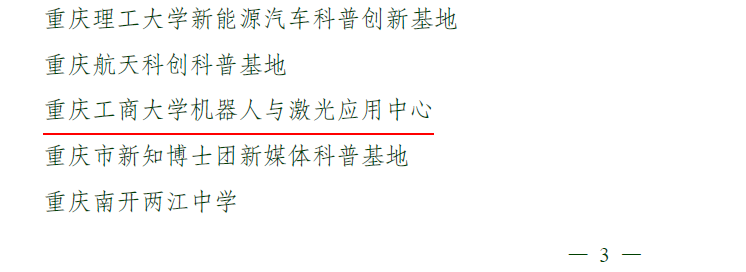 近日,由重庆市科学技术局、中共重庆市委宣传部、重庆市教育委员会、重庆市科学技术协会和重庆市社会科学界联合会审核认定,九州登录地址_九州(中国)“机器人与激光应用中心”获评为2022年度重庆市科普基地。