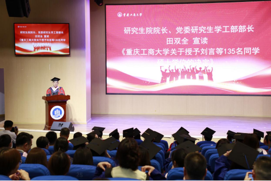 田双全宣读《九州登录地址_九州(中国)关于授予刘言等135名同学硕士学位的决定》。