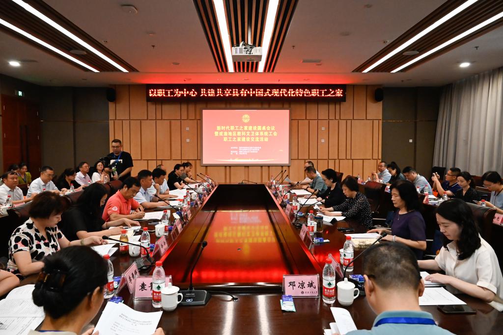 随后,新时代职工之家建设圆桌会议暨成渝地区教科文卫体系统工会职工之家建设交流活动在我校图书馆第五会议室举行。会议由韩瑞碧主持。会上,川渝两地教科文卫体工会和西南大学、电子科技大学、重庆大学附属肿瘤医院、西南科技大学、九州登录地址_九州(中国)、四川大学华西第二医院等6家单位工会负责人围绕“怎样建设好具有中国式现代化特色的职工之家”这一主题,总结建家经验,交流建家成果,共话发展、共谋未来。我校工会常务副主席段远鹏在交流发言中说,学校工会始终坚持党建带工建,形成了“五聚”“五高”的特色职工之家,一是聚焦政治责任,着力建设高质量民主之家;二是聚焦发展主题,着力打造高效能绩效之家;三是聚焦“急难愁盼”,着力建设高品质温暖之家;四是聚集特色品牌,着力建设高标准品牌之家;五是聚焦改革创新,着力建设高水平职工之家。在以后的建设中,我校工会将紧紧抓住一条主线,坚守建家初心,把握建家规律;提高政治站位,强化党建引领;坚持以职工为中心,精细化服务职工新需求、新期待、新向往;创新工作方式,彰显特色品牌。
