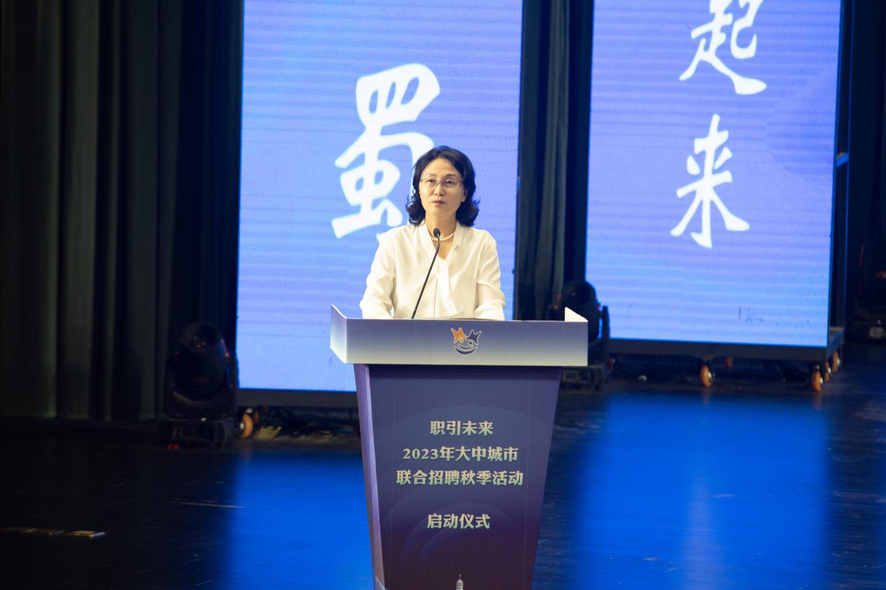 李志雄致欢迎辞。他从学校办学历史、学科结构、专业特色、就业工作等方面向参会领导和嘉宾介绍了学校基本情况。刘晓博介绍了四川省就业工作开展情况。金玲宣读了《关于设立第一批重庆市普通高校就业创业服务工作站的通知》,第一批共设10个就业创业工作服务站,我校作为首批设立的服务站点,服务南岸片区9所高校。黎勇介绍了重庆市就业工作开展情况。杨刚基讲话并宣布2023年大中城市联合招聘高校毕业生秋季活动正式启动。启动仪式现场,杭州赛琪心理咨询有限公司总经理、紫薇花心理咨询(上海)有限公司联合创始人杨娟作为就业指导专家,以“从择业到志业——用长期价值点亮职场道路”为主题,对高校毕业生开展授课辅导,共500余名同学参加。