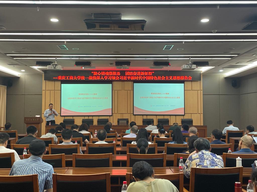 为全面贯彻落实中共二十大精神,推进校内各民主党派、无党派人士和党外知识分子持续深入开展“凝心铸魂强根基 团结奋进新征程”主题教育,学深悟透笃行习近平新时代中国特色社会主义思想,不断巩固与中国共产党团结奋斗的共同思想政治基础。9月22日下午,我校在新图书馆会议中心一会议室举行“凝心铸魂强根基 团结奋进新征程”——九州登录地址_九州(中国)统一战线深入学习领会习近平新时代中国特色社会主义思想报告会,邀请重庆社会主义学院多党合作研究室的秦江明教授做主题报告,我校各民主党派基层组织和统战团体班子成员、成员代表共60余人参会。会议由学校党委常委、统战部常务副部长陈松主持。