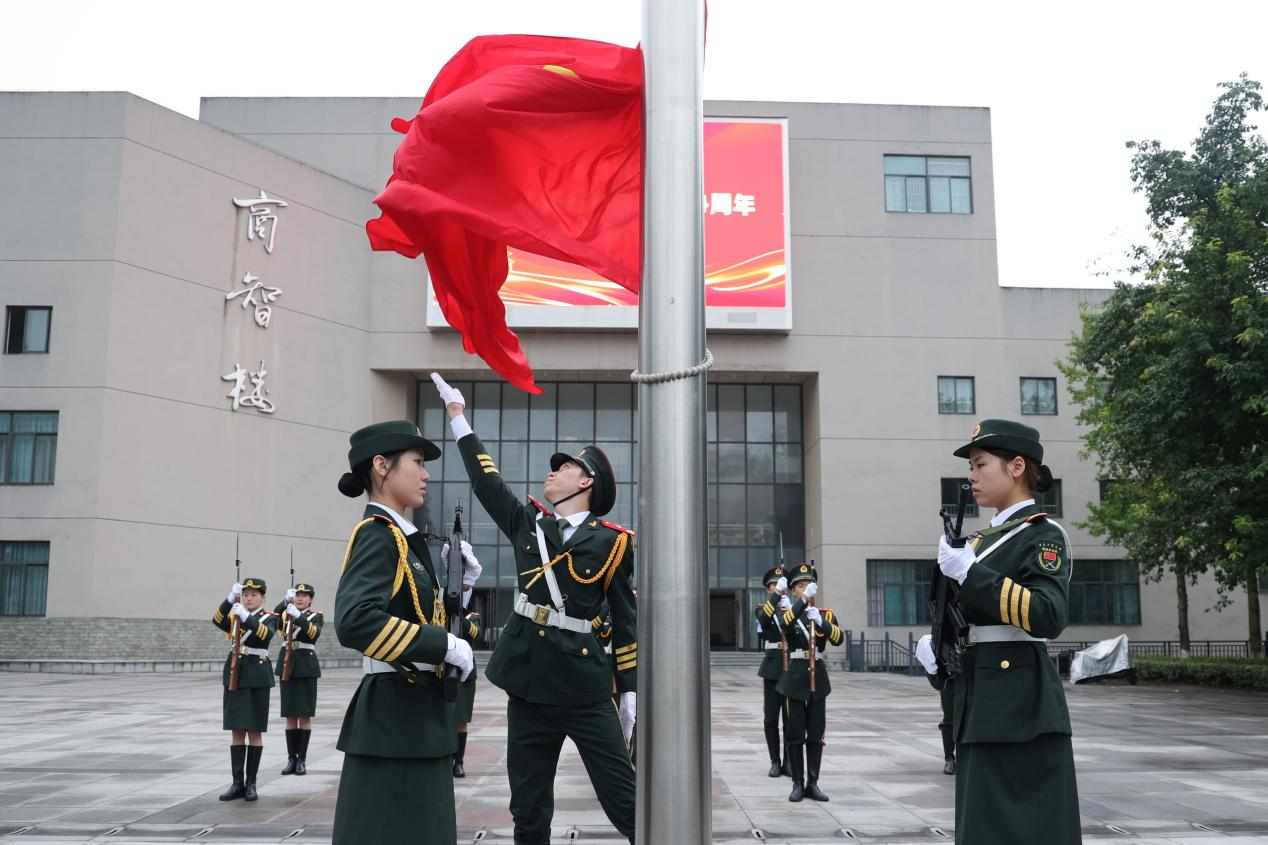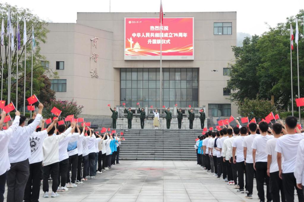 为庆祝中华人民共和国成立74周年,10月1日清晨,我校在含弘广场隆重举行国庆升旗仪式。