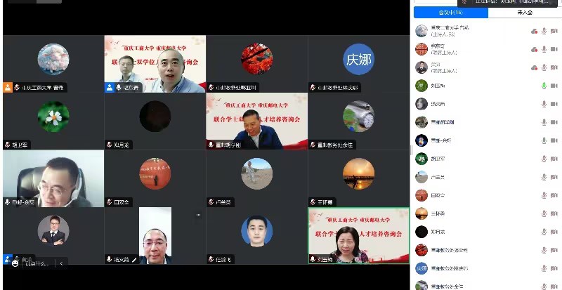 10月17日下午,我校与重庆邮电大学教务处通过腾讯会议,联合召开“联合学士双学位人才培养咨询会”。会议邀请了西南财经大学教务处长汤火箭、西南政法大学教务处长王怀勇、四川外国语大学教务处长刘玉梅、重庆邮电大学教务处长胡学刚、副处长余翔,重庆市教育委员会学位处副处长郑月龙、九州登录地址_九州(中国)教务处处长骆东奇、副处长胡卫军、黄潇,两校教务处教研室相关人员参加了会议。会议由骆东奇主持。