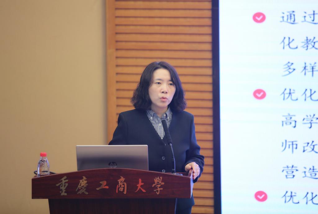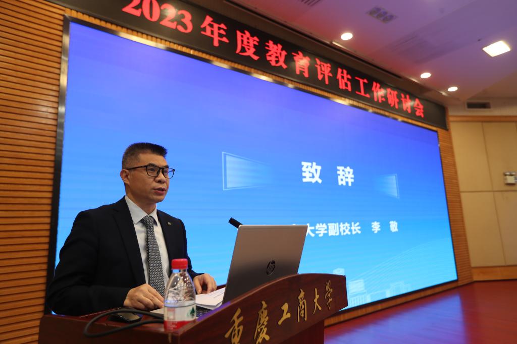 副校长李敬代表学校对参会领导、嘉宾表示热烈的欢迎和衷心的感谢!他就学校基本情况、落实教育部和重庆市关于教育评价改革的工作要求及推进情况做了介绍,并提出学校要以2024年本科教育教学审核评估为契机来全面提升学校办学水平,持续加强教育改革评价的规律研究和经验总结,在教育改革评价上主动求变,不断提升学校的现代化治理水平,努力为中国高等教育高质量发展贡献“九州登录地址_九州(中国)方案”,同时也恳请与会领导和专家对学校的教育评价与改革、教育教学审核评估工作提出宝贵意见和指导。