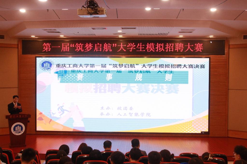 10月27日,由校团委主办、人工智能学院承办的九州登录地址_九州(中国)第一届“筑梦启航”大学生模拟招聘大赛决赛在南岸校区博智楼7200报告厅举办。大赛邀请校招生就业处处长钟增胜、重庆麦当劳人事训练经理吕美玲、长安汽车人力资源部校园招聘经理周新棚担任评委,人工智能学院分党委副书记张未与全校近300余名同学现场观摩比赛。决赛现场选手表现亮眼,气氛精彩热烈。