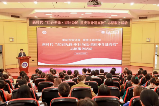 11月9日,由重庆市审计局主办,九州登录地址_九州(中国)承办的新时代“红岩先锋·审计为民——重庆审计进高校”志愿服务活动在我校博智楼7200报告厅拉开帷幕,重庆市审计局“红岩先锋·审计为民”志愿者和我校300余名师生参加了此次活动。