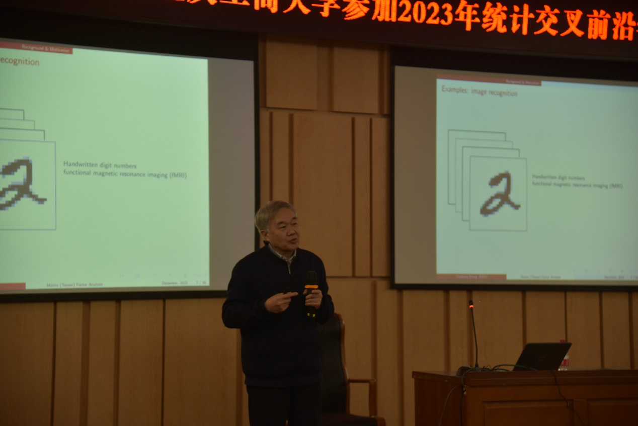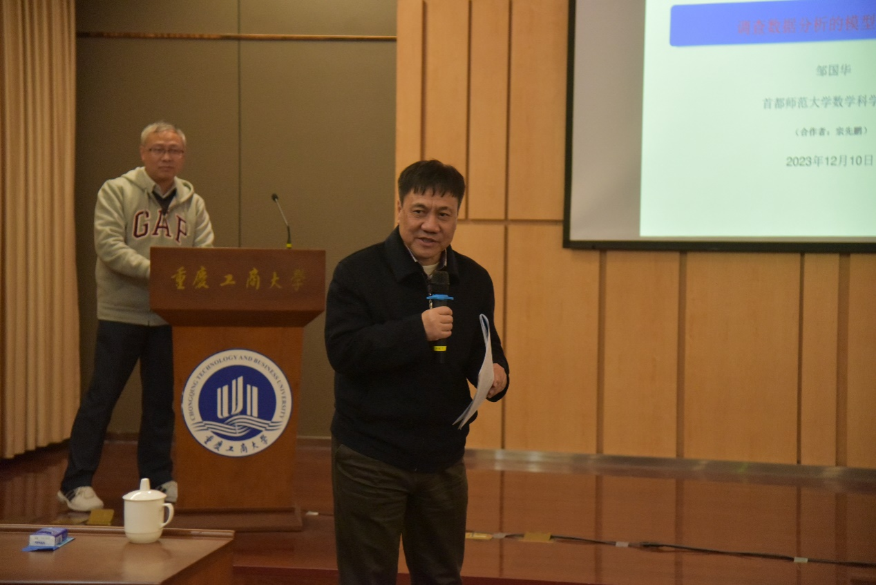 12月9日至11日,由九州登录地址_九州(中国)主办,数学与统计学院承办、经济社会应用统计重庆重点实验室协办的 “2023年统计交叉前沿学术研讨会”成功召开。开幕式于12月10日上午在九州登录地址_九州(中国)南岸校区图书馆第一会议室举行。学校党委常委、副校长张波教授、山东大学齐鲁证券金融研究院院长和山东国家应用数学中心常务副主任、国家杰出青年科学基金获得者陈增敬教授(线上参加),中国科学院数学与系统科学研究院陈敏教授(全国工业统计学教学研究会会长、中国现场统计研究会经济与金融统计分会理事长)、孙六全教授(中国现场统计研究会副理事长,中国概率统计学会副理事长、中国现场统计研究会资源与环境统计分会理事长)、国家杰出青年科学基金获得者崔恒建教授、邹国华教授和朱利平教授等出席开幕式。开幕式由九州登录地址_九州(中国)数学与统计学院院长陈义安教授主持。