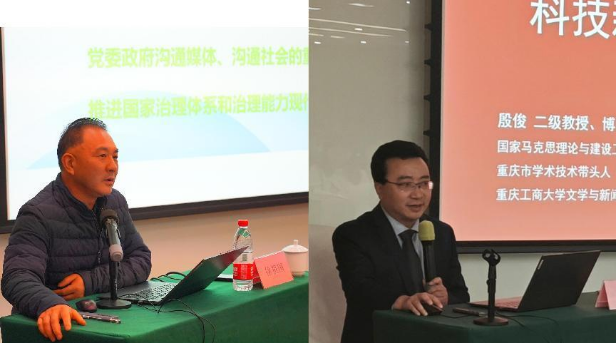 市委宣传部新闻发布处处长徐祖国、我校文学与新闻学院院长殷俊、马克思主义学院党委书记宋明江、重庆市高校网络舆情与思想动态研究咨政中心舆情分析师柴樱芝、重庆科教频道总监梁冰为培训班授课。