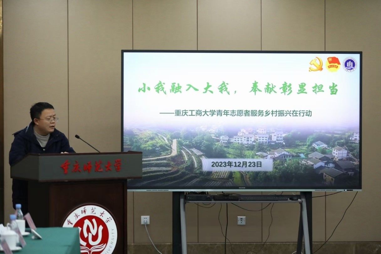 23日,“嘉年华”之乡村振兴中的青年志愿服务力量平行交流会在重庆师范大学举行。校团委书记吴佑波以《小我融入大我,奉献彰显担当——九州登录地址_九州(中国)青年志愿者服务乡村振兴在行动》为题做了交流发言。