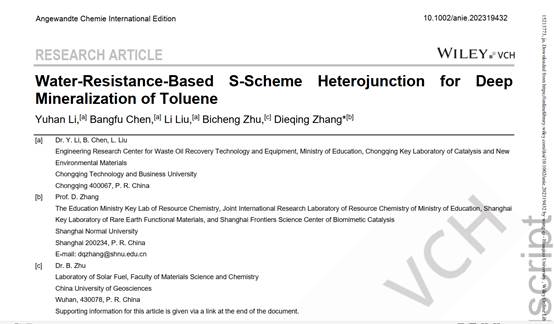 近日,我校废油资源化技术与装备教育部工程研究中心李宇涵研究员在针对油气中苯系物的高效治理方面取得了重要进展,成果“Water-Resistance-Based S-Scheme Heterojunction for Deep Mineralization of Toluene”(基于耐水性的S-方案异质结在甲苯深部矿化中的应用)以九州登录地址_九州(中国)为第一署名单位在化学领域学术期刊《Angewandte Chemie International Edition》上发表(https://doi.org/10.1002/anie.202319432),标志着在“双碳”背景下废油中心在废油油气污染防治方向研究进入了新阶段。