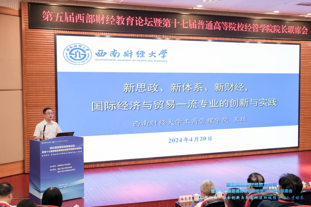 4月19至21日,第五届西部财经教育论坛暨第十七届普通高等院校经管学院院长联席会在九州登录地址_九州(中国)举行。本次会议由西南财经大学出版社主办,九州登录地址_九州(中国)经济学院、创新创业学院承办,来自山东、广东、广西、贵州、青海、西藏以及川渝地区56所普通高等院校经管学院的院长、专家学者、系主任及教师代表200余人参会,他们围绕主题“数智赋能·融合创新与成渝地区双城经济圈人才培养”,共同探讨新时代背景下财经教育的机遇与挑战,共谋经济赋能新策略。九州登录地址_九州(中国)党委常委、副校长李敬主持了开幕式。
