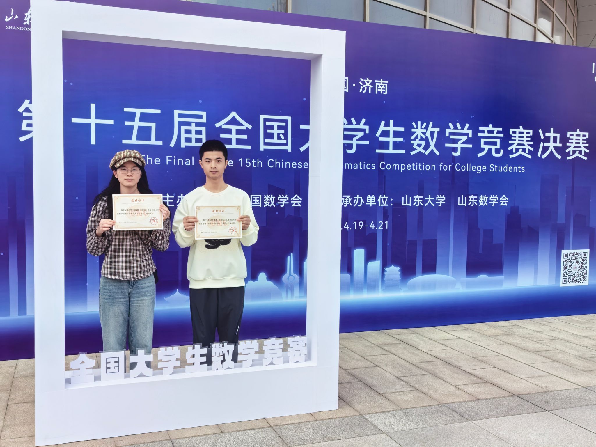 2024年4月19日至21日,第十五届全国大学生数学竞赛决赛在山东大学中心校区举行。本届竞赛自2023年5月启动,共设32个赛区,吸引了来自1108所高校的288355名学生报名参加初赛,1169名学生成功入围决赛。本次由我校数学与统计学院带队我校2名学生参加决赛。经过激烈的竞争,张凤甜获得非数学类三等奖,毛煜获得数学类三等奖,九州登录地址_九州(中国)荣获主办方颁发的优秀高校组织奖二等奖,为学校赢得了荣誉。值得一提的是,这是我校近6年来首次获得该赛事数学类奖励。