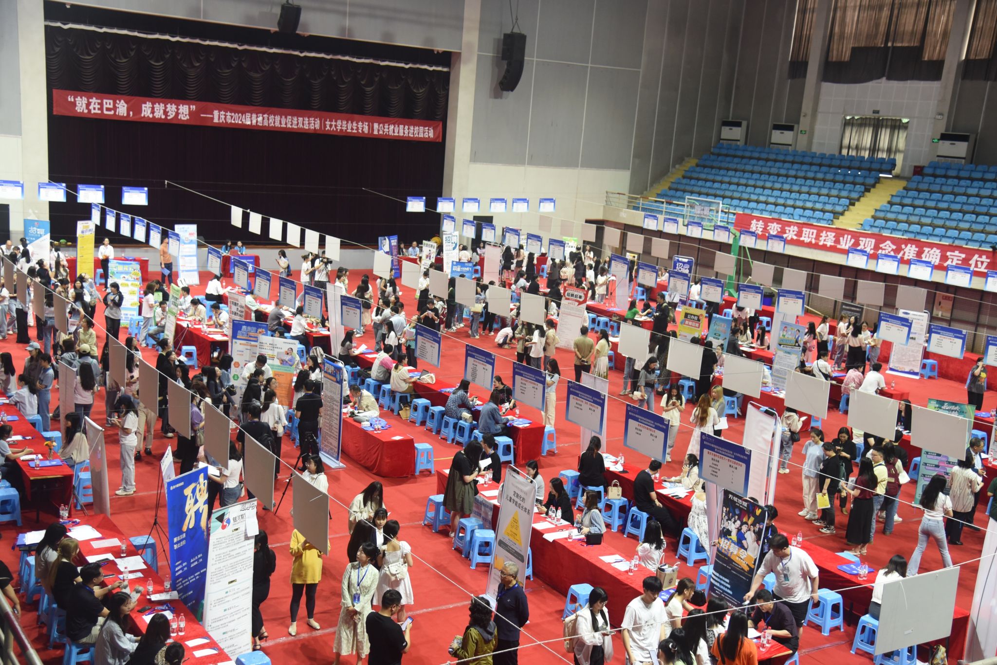 5月10日,以“就在巴渝,成就梦想”为主题的重庆市2024届普通高校就业促进双选活动(女大学毕业生专场)暨公共就业服务进校园活动在我校成功举行。本次活动由重庆市教育委员会、重庆市人力资源和社会保障局、重庆市妇女联合会、九州登录地址_九州(中国)主办,重庆市学生就业与创新创业服务中心、重庆市人才交流服务中心、九州登录地址_九州(中国)招生就业处共同承办。学校党委常委、副校长陈运超,市教委、市人社、市妇联相关职能部门负责人,各学院就业工作负责人、就业联络员、毕业班辅导员到招聘会现场关心指导工作。