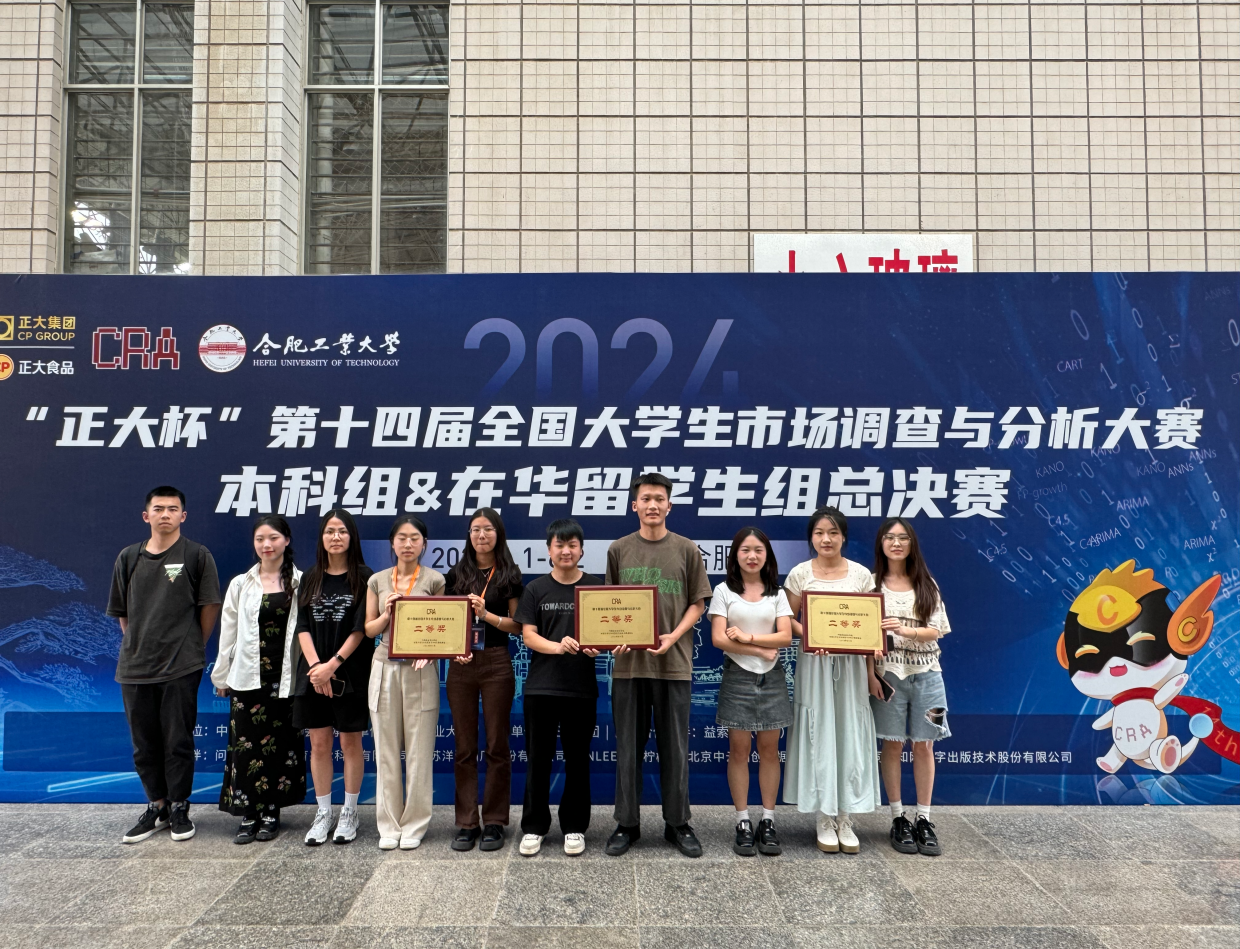 6月1日至2日,第十四届全国大学生市场调查与分析大赛决赛在合肥工业大学翡翠湖校区举行。本届大赛自2023年9月启动,共吸引来自全国34个省级行政区的1063所高校、29.5万名学生报名参赛。历时7个月,经过理论知识赛、校赛、省赛的层层选拔,共有240支本科组团队、69支在华留学生组团队入围全国总决赛。我校有3支本科生团队、1支在华留学生团队进入全国总决赛。