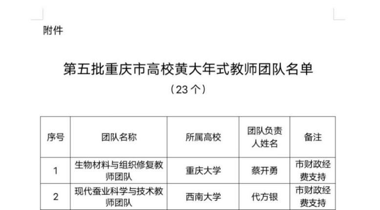目前,我校已有3个团队入选重庆市“黄大年式”教师团队。
