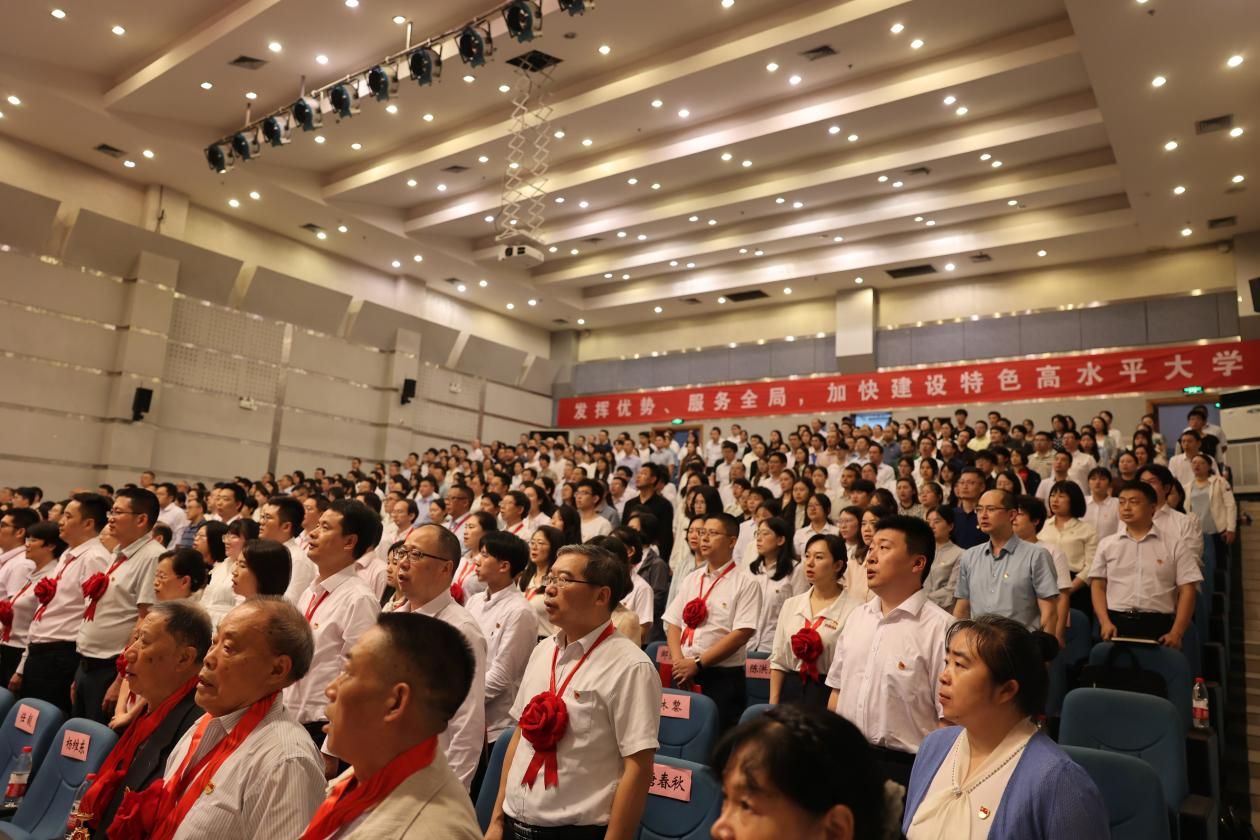 6月27日下午,我校庆祝中国共产党成立103周年暨“两优一先”表彰会在博智楼7100报告厅隆重举行。学校全体在家校领导,全体党委委员,受表彰的先进基层党组织负责人和优秀个人,“光荣在党50年”党员代表和30年党龄的党员代表、全体中层干部和专职组织员、全体党支部书记,党员师生代表等430余人参加会议。大会由学校党委副书记宋豫主持。