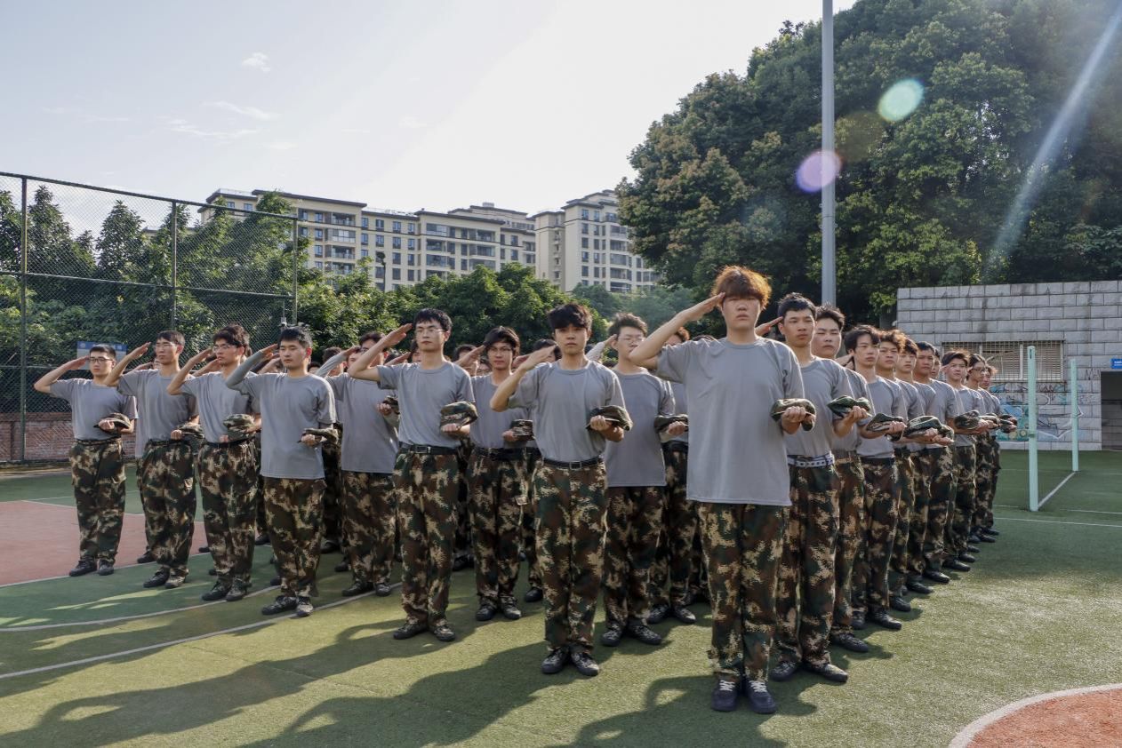 清晨,当薄光穿透云层,洒下第一道光时,操场上已一片繁忙。同学们在教官的指挥下,迅速列队,开始了第一天的训练。盛夏火辣的太阳炙烤着大地,汗水将他们的头发和衣服都打湿了。虽然训练紧张忙碌,但同学们个个眼神坚毅、昂首挺胸、目视前方。