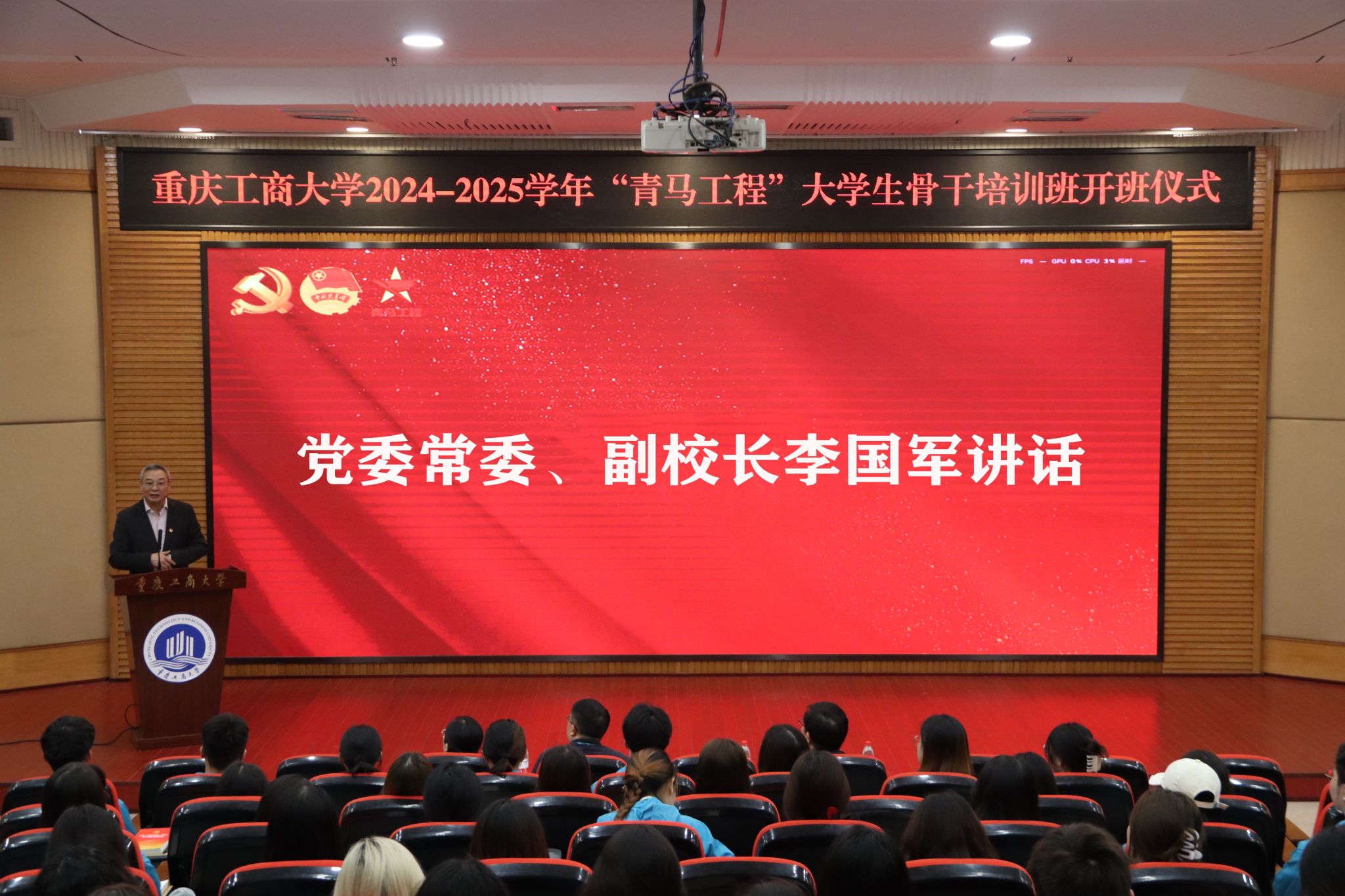 10月11日下午,我校2024-2025学年“青马工程”大学生骨干培训班开班仪式在博智楼7200报告厅举行。学校党委常委、副校长李国军,校团委书记吴佑波,团市委青年讲师团讲师董骏,校团委王微老师,150名校级青马学员参加了活动。