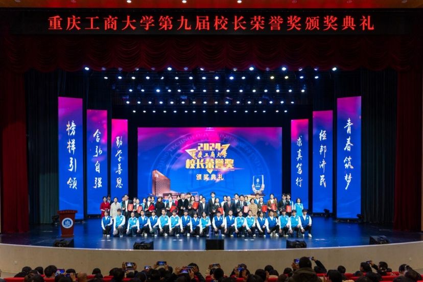 典礼以视频的形式介绍了校长荣誉奖的设立目的及其评选情况。此次“校长荣誉奖”评选经个人自荐与学院推荐相结合,学生处与研究生院复核,评审工作组初评,全面考察和复审答辩等环节,最终评选出了8位学生个人和2个团队。国际商学院2021级金融学专业陈彦甫,机械工程学院汽车人协会,人工智能学院2022级软件工程专业硕士研究生章勤,工商管理学院2021级工商管理专业周安宁,会计学院2021级智能会计班张婧,现代国际设计艺术学院2021级服装与服饰设计专业陈韵至,法学与社会学学院2021级法学专业张炜嘉,管理科学与工程学院BIM 协会,外国语学院2021级法语专业祖诗淇,成渝地区双城经济圈建设研究院2022级产业经济学专业博士研究生宋泓锑等脱颖而出,接过由校领导亲自颁发的、代表我校学子校内最高荣誉的奖项。