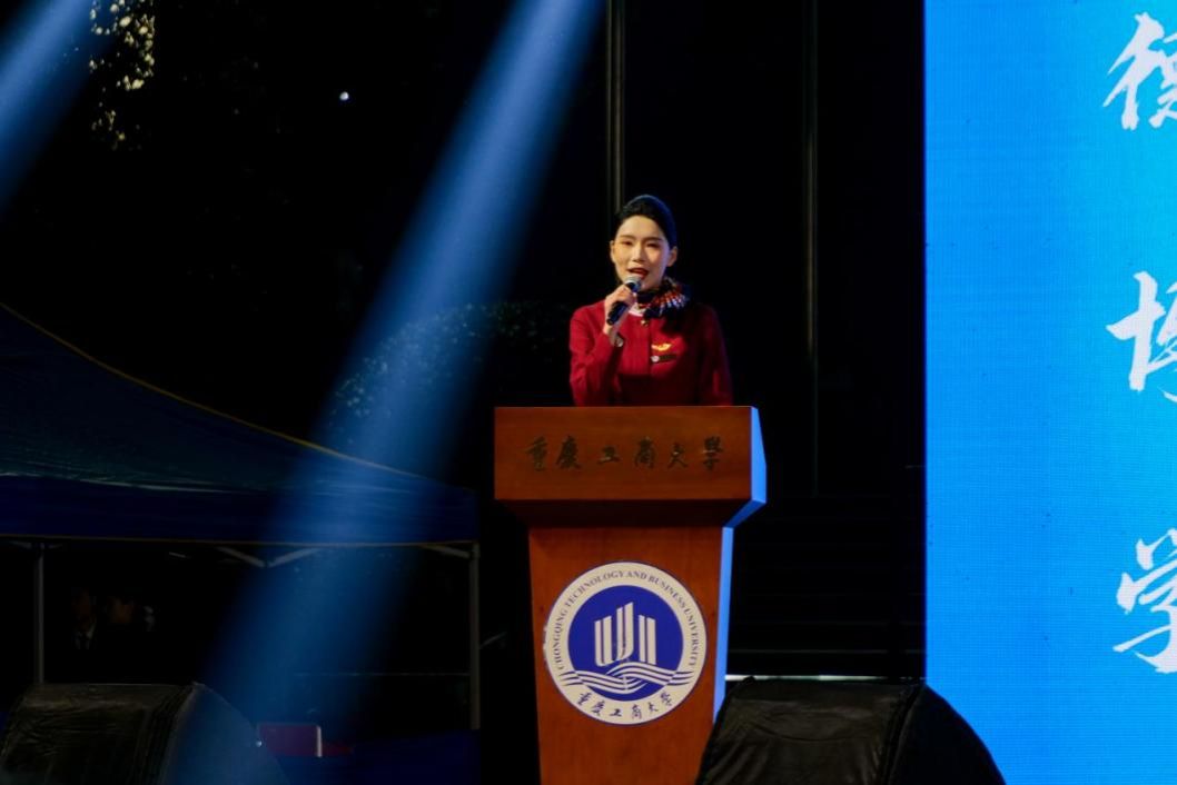 柏群致辞。她向莅临授装仪式的、关心支持学校建设发展的各位领导、嘉宾表示热烈的欢迎和诚挚的感谢。她表示,今年是学校与中航未来教育集团联合开办航空服务艺术与管理专业的第二年,目前已有在校学生180名。学校的艺术学科专业注重融入财经特色、紧密对接行业、加强国际合作,校企紧密合作协同育人成效初显。本次授装仪式暨专业素养展示,既是学生专业教育培养的一个重要环节,也是落实以美育人、以文化人,提高学生审美和人文素养、营造校园文化育人氛围的体现。她期望同学们将人生“航程”始终与中国式现代化新征程同向同行,勇做走在时代前列的奋进者、开拓者、奉献者,为中国式现代化谱写更加壮美的重庆篇章贡献青春力量。
