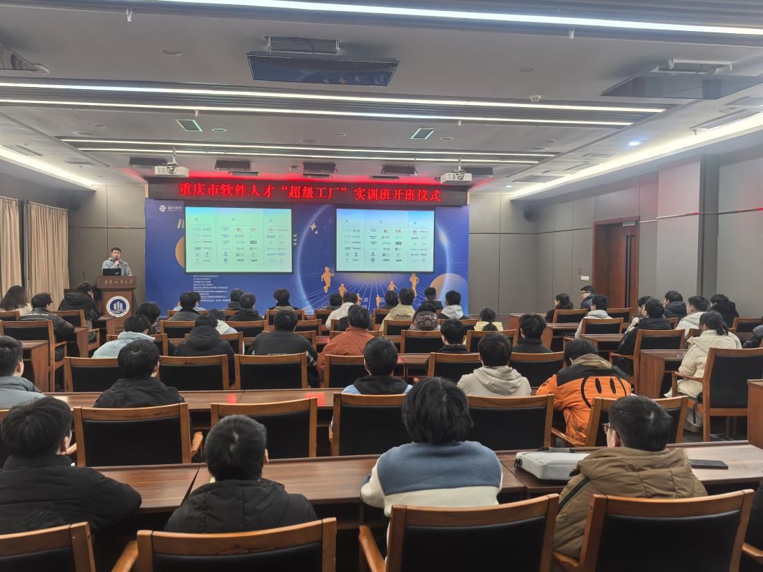 12月30日上午,我校人工智能学院与重庆软件园联合举办的重庆市软件人才“超级工厂”项目实训班开班仪式在图书馆第一会议室顺利举行。人工智能学院副院长范兴容、重庆软件园副总经理兼重软学院院长石琳艳、重庆软件园人才服务部经理周军丞,以及学院毕业班辅导员和全体学员参加了开班仪式。