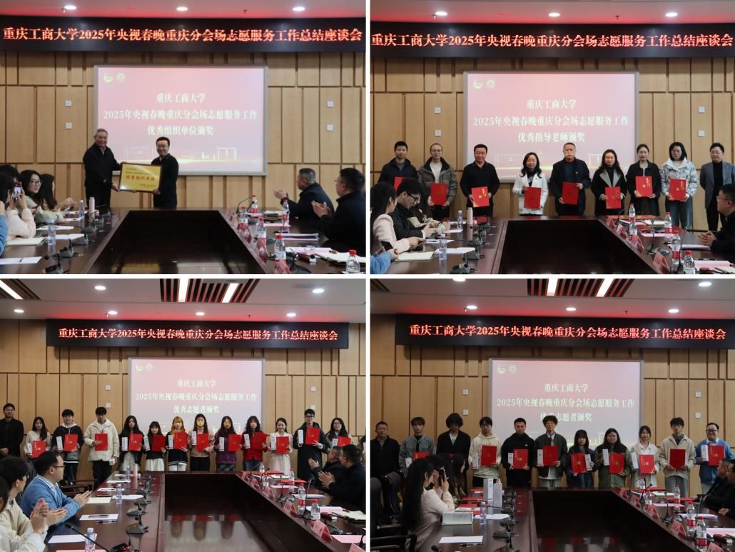 会上,与会领导为我校2025年央视春晚重庆分会场志愿服务工作优秀组织单位、优秀指导教师、优秀志愿者颁奖。