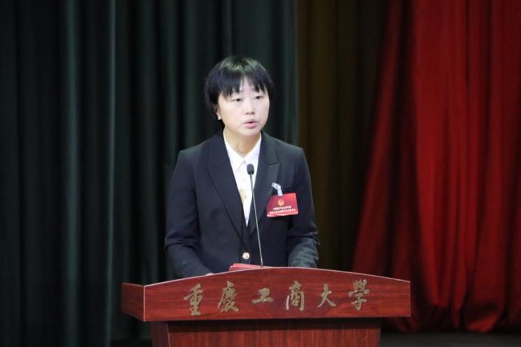 杨春渝向大会胜利召开表示热烈祝贺并讲话。她肯定近年来重工商大共青团取得的成绩。在学校党政的正确领导和亲切关怀下,学校共青团紧扣思想政治引领,持续深化青年马克思主义者培养工程,通过构建“红岩铸魂·筑梦启航”思政育人体系,不断提升共青团思想政治引领实效。紧盯青年学生全面发展,打造“筑梦启航”团学工作总品牌,深入开展“科技、志愿、艺术、社团、体育‘五大文化节’”“感动校园人物”等品牌活动,积极服务学生德智体美劳全面发展。紧抓组织改革建设,对标从严治党全面从严管团治团,完善基层团组织激励考核举措,推行班团一体化改革,开展“青春倡廉”行动,不断加强团组织、团干部、团员先进性建设。紧推数字赋能增效,依托“青春重庆”应用为学校共青团工作注入数“智”化活力,先后荣获“挑战杯”全国一等奖、“三下乡”社会实践全国优秀单位、中国青年志愿者优秀组织奖等多个全国标志性成果。她讲到,重工商大团员青年要深学笃行习近平总书记关于青年工作的重要思想,在新重庆建设中贡献青春力量。并对我校共青团提出了四点希望,一是切实加强对青年师生政治引领。二是广泛动员青年师生建功新重庆。三是更好联系服务青年师生。四是对标全面从严治党推进全面从严治团。