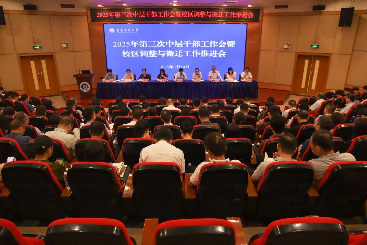 7月10日上午,我校2025年第三次中层干部工作会暨校区调整与搬迁工作推进会在博智楼7200报告厅召开。学校党委书记曾维伦主持会议并讲话。全体校领导、中层干部参加会议。