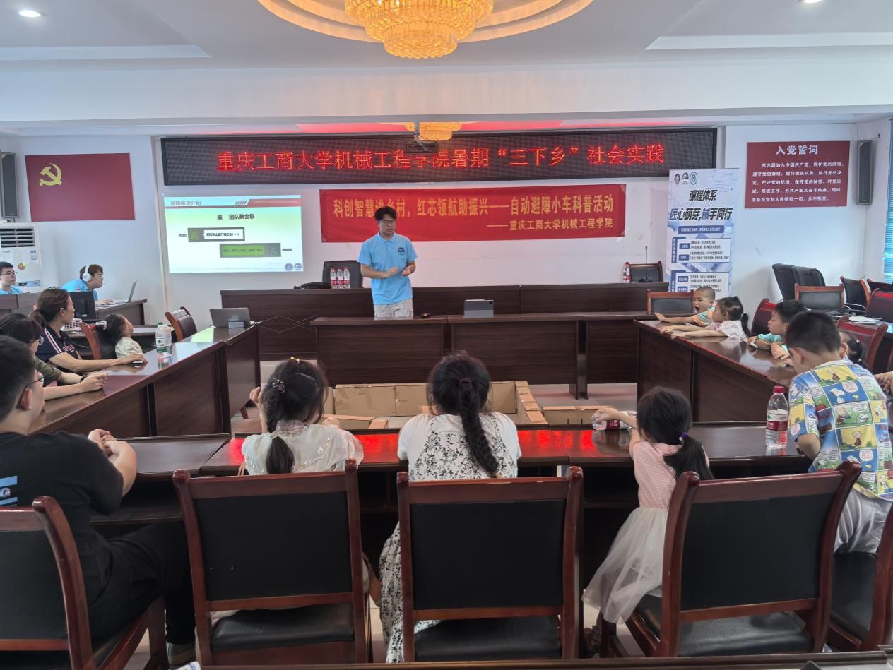 7月7日至10日,机械工程学院“红岩铸魂乡土情,机械赋能振兴梦”实践团(支坪分团)赴江津区支坪镇白溪社区开展实践活动,通过多元化实践为乡村振兴注入青春动能。实践团联合“星包装”协会,深入了解当地农产品的品种品质、销售情况及销售需求,为支坪镇白溪社区李子园农产品外包装设计构建“调研—设计-推广”全链条服务体系。成员们立足学科背景,发挥专业特长各抒己见,就李子园农产品的经销以及外包装设计展开讨论,提供可行意见及方案。同时,实践团开展大学生科普进社区活动,在“探索循迹小车”课堂上,成员拆解模型讲解智能控制原理;在“激光雕刻木牛流马”实践课上,成员用激光雕刻机复刻古代机械,直观展现传统智慧与现代技术的融合;在“走进智能时代,拥抱AI变革”工作坊中,成员将NAO机器人带来现场,用通俗语言解析人工智能原理,让科学探索的种子从童年开始萌芽。