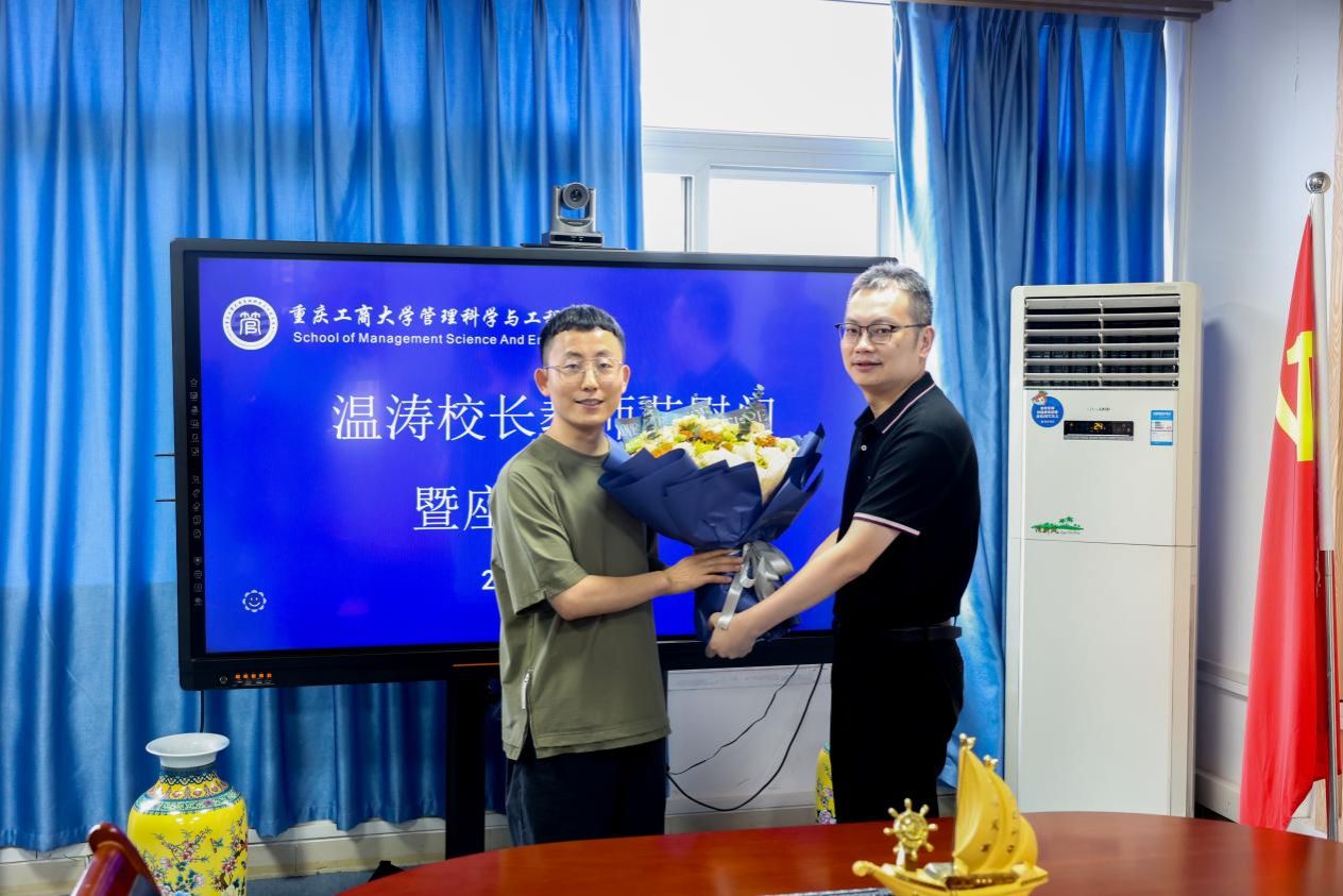 温涛带队慰问管理科学与工程学院曹策俊教授,详细了解其教学、科研情况及面临的困难。他对曹策俊在工作中取得的成绩表示充分肯定,勉励其在自己的科研方向上持续深耕、做好科研成果反哺人才培养工作,全面发展,持续提升教学科研水平,为学校教育事业作出更大贡献。